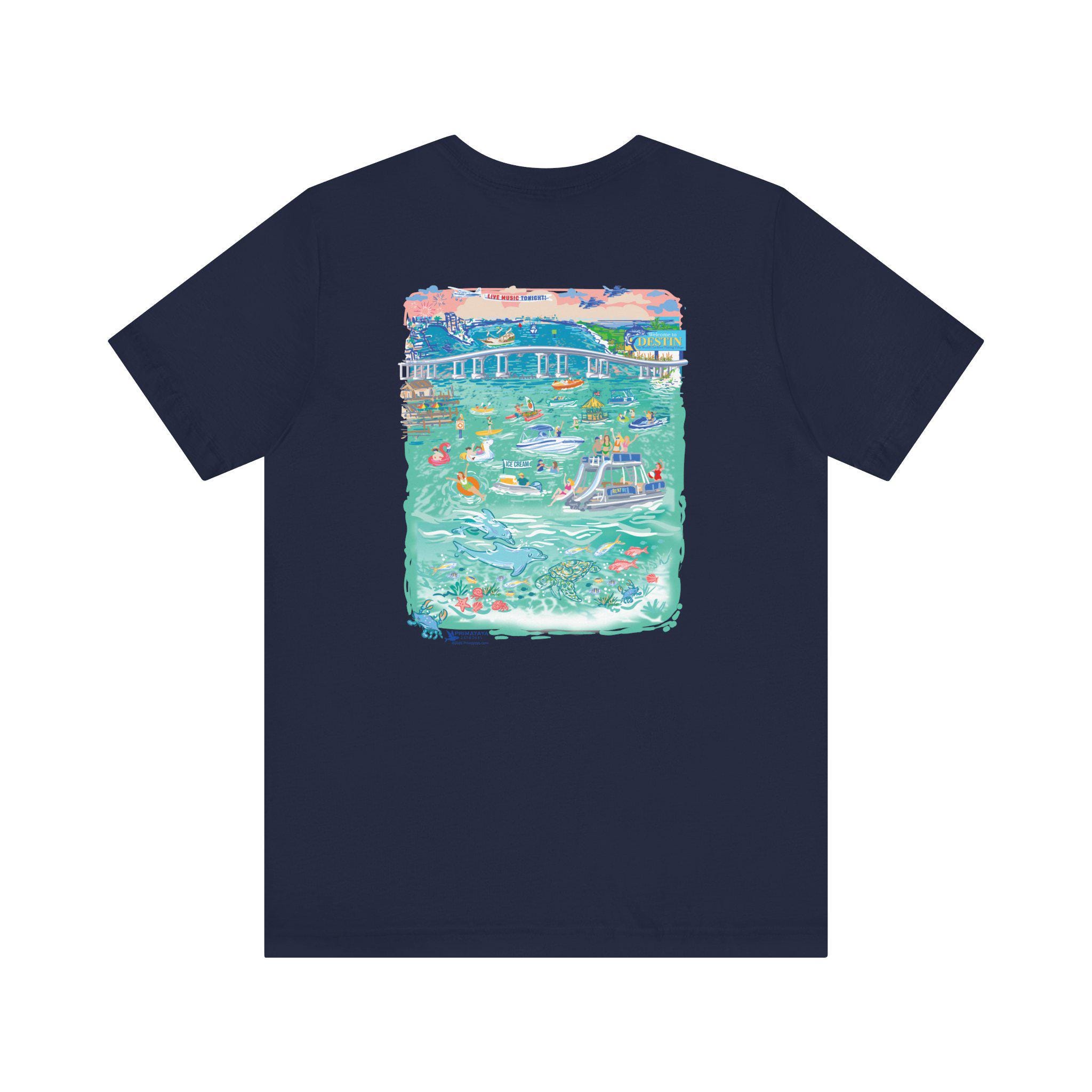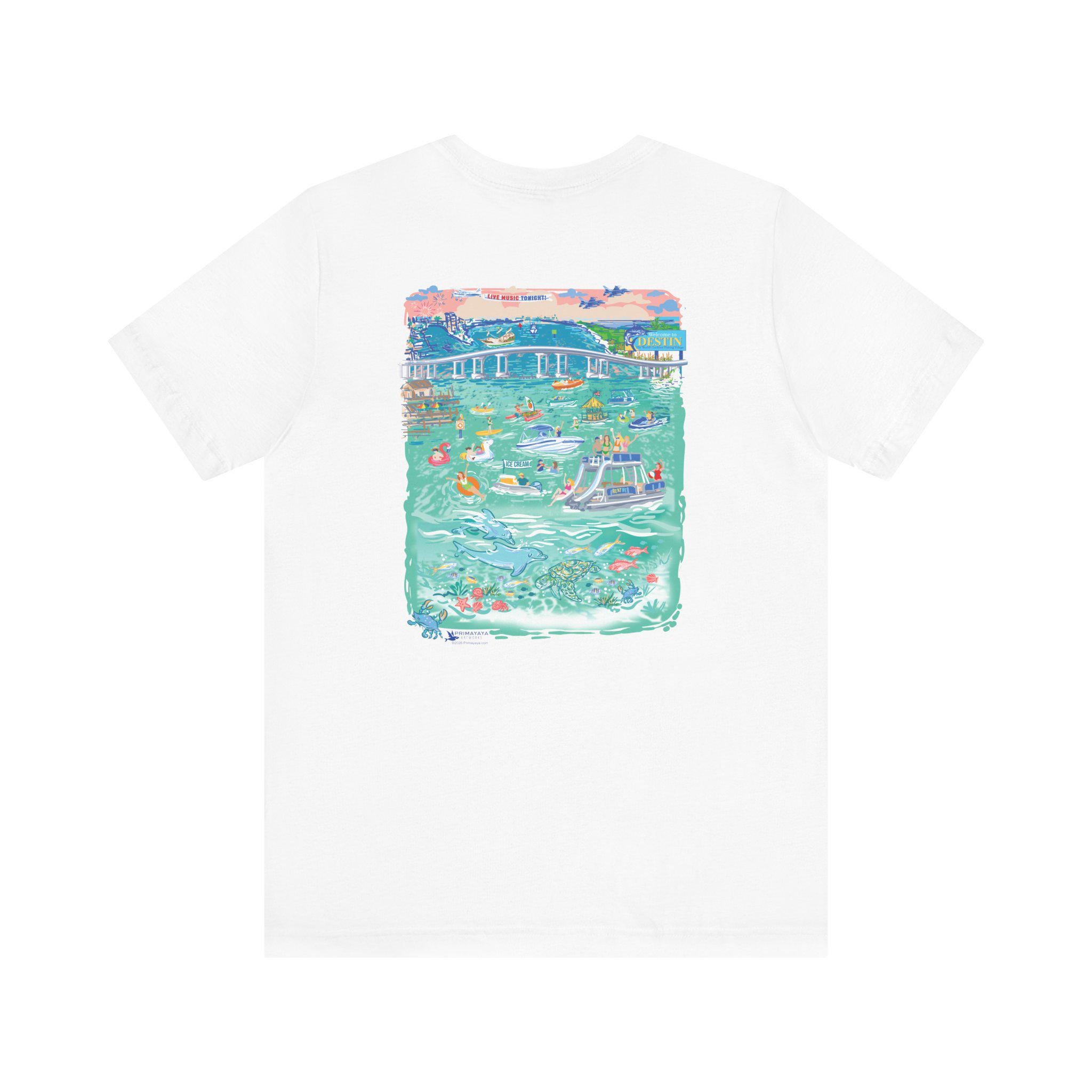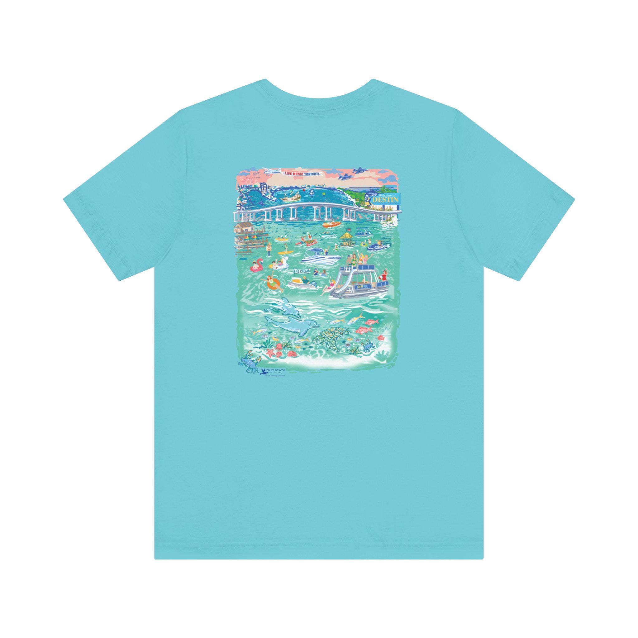 Crab Island is a well-known attraction in Destin, Florida. The clear, shallow water is a popular gathering spot for boats and water toys. It is a landmark icon with its floating party of pontoons, wave runners, kayaks, food vendors and boats of all sizes. The activity is captured in this vintage-style illustration created by the artist. The Crab Island Poster is also available from our store.