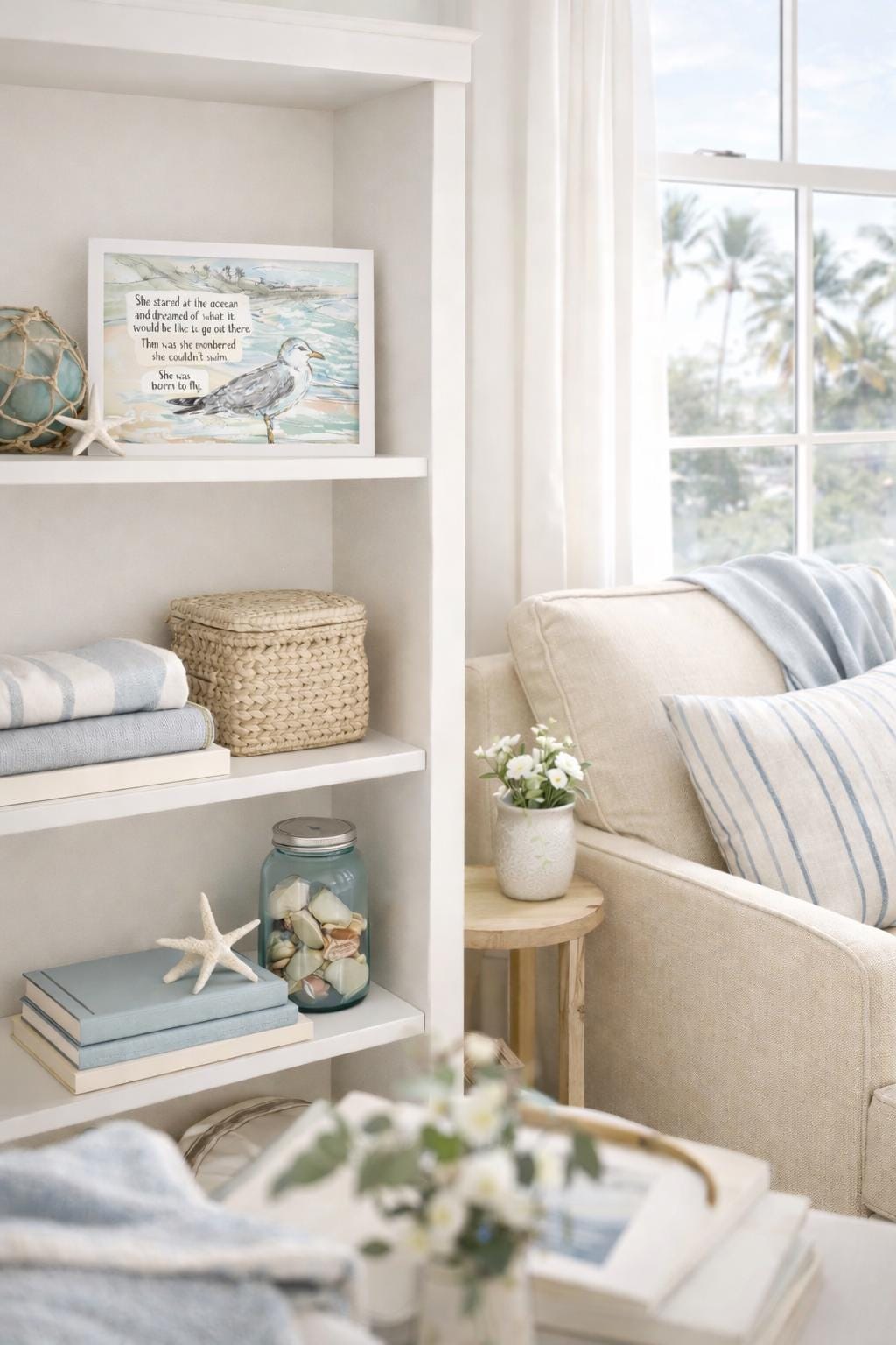 Small enough to style on a bookcase, desk, or cozy nook, it adds meaning without overwhelming your space. It’s the kind of art that feels personal — like a deep breath of ocean air on a busy day.