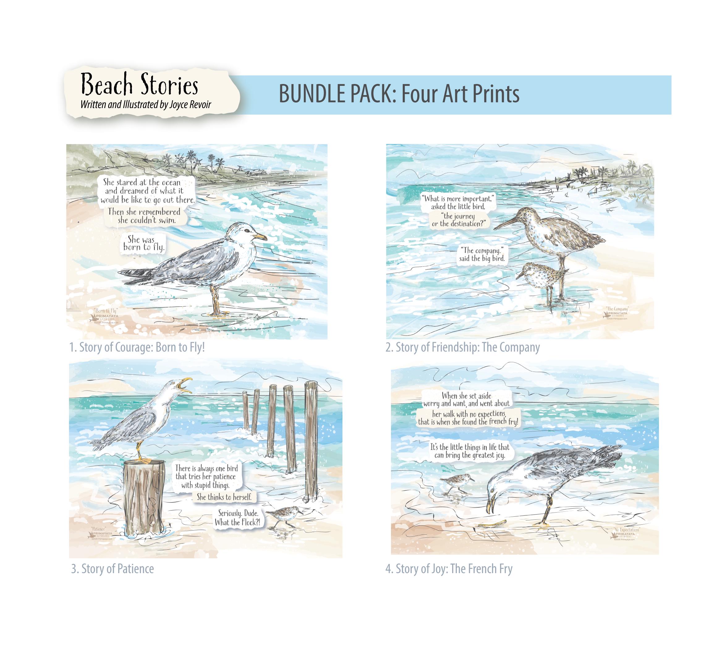Each piece captures a small moment from life at the shore — the curious seagull, the busy sandpipers, and the quiet humor of a day by the ocean. Together they create a fun and stylish coastal decor set perfect for beach lovers.
