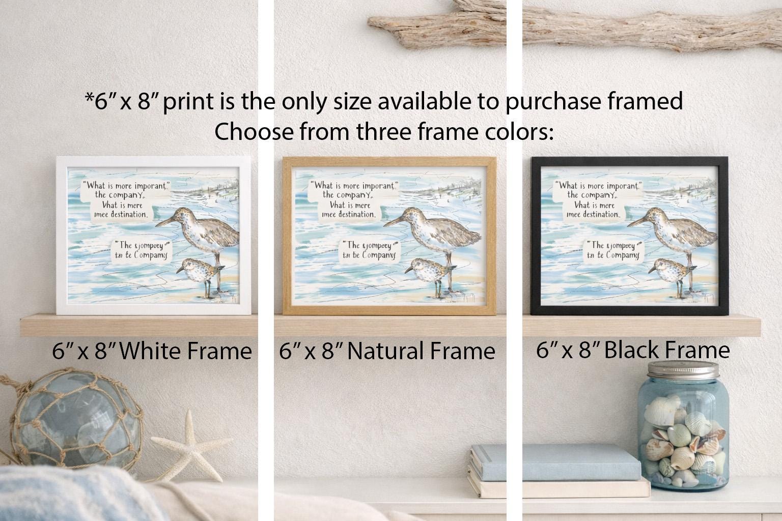 • Available framed 6x8 in three colors: white, natural or black