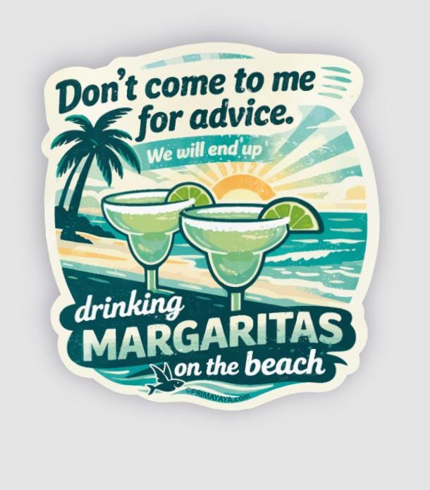 Inspired by sharing perfect beach moments with a good friend and a frozen drink. This fun vinyl sticker brings beachy, free-spirit vibes wherever you stick it. Featuring a colorful pair of perfect margaritas overlooking a sunset and surf, it’s the perfect little reminder to just sit in the sun with a friend. Great gift for your favorite beach buddy.